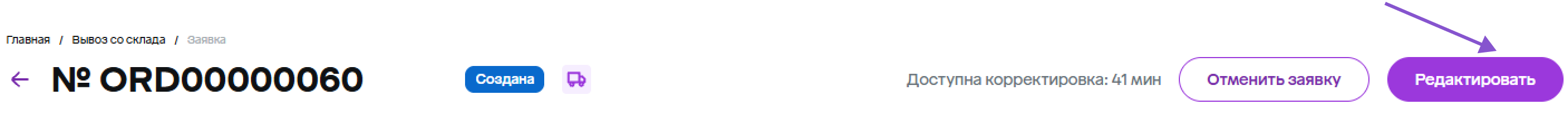 Изменить заявку на вывоз можно не позже, чем за 5 дней до даты вывоза. Время, которое у вас есть на отмену, можно увидеть в карточке с заявкой сверху.