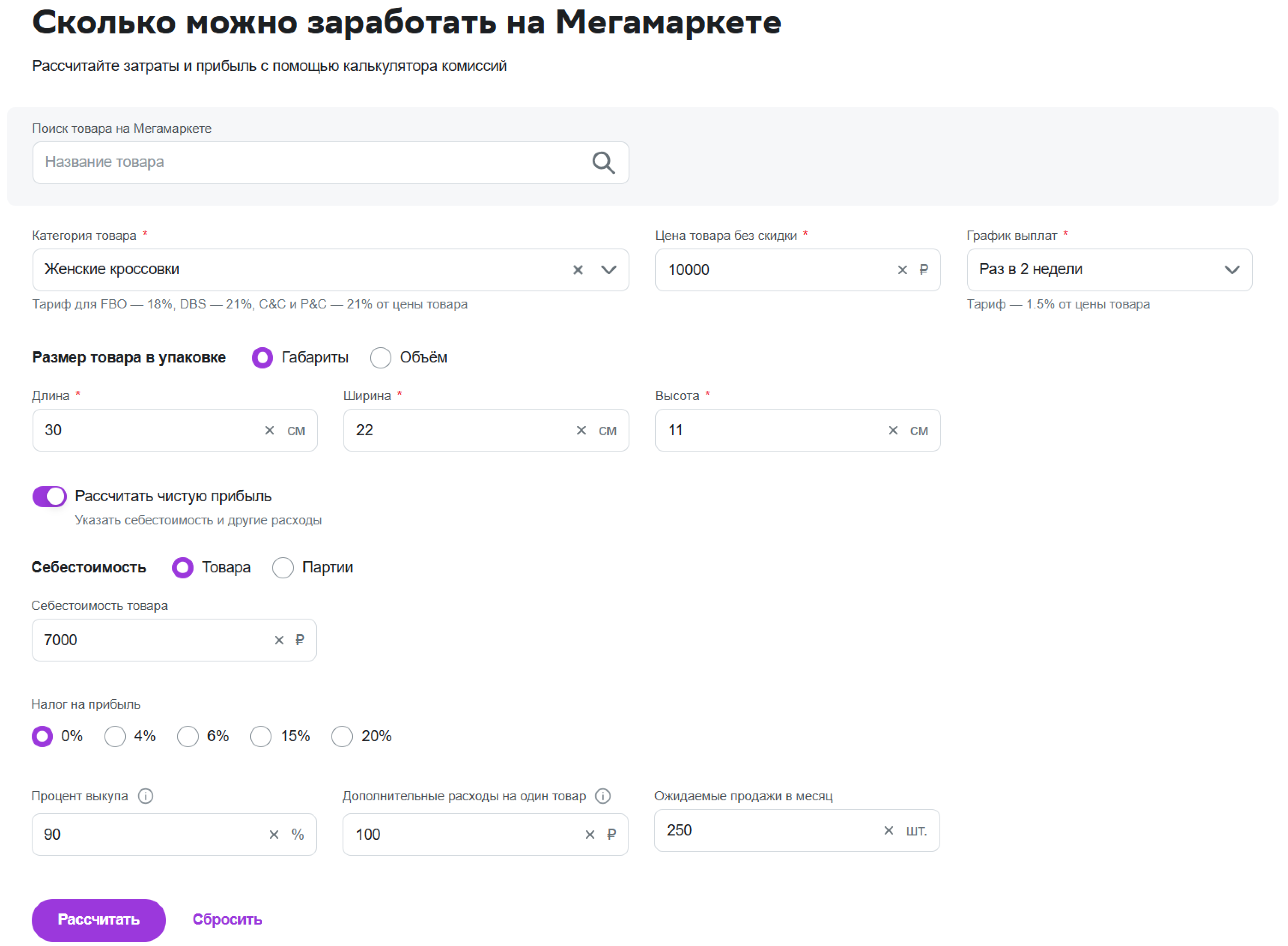 Калькулятор комиссий поможет рассчитать затраты и примерную прибыль от продажи товаров. Ссылку на него можно найти на сайте, а также на странице регистрации продавцов.
