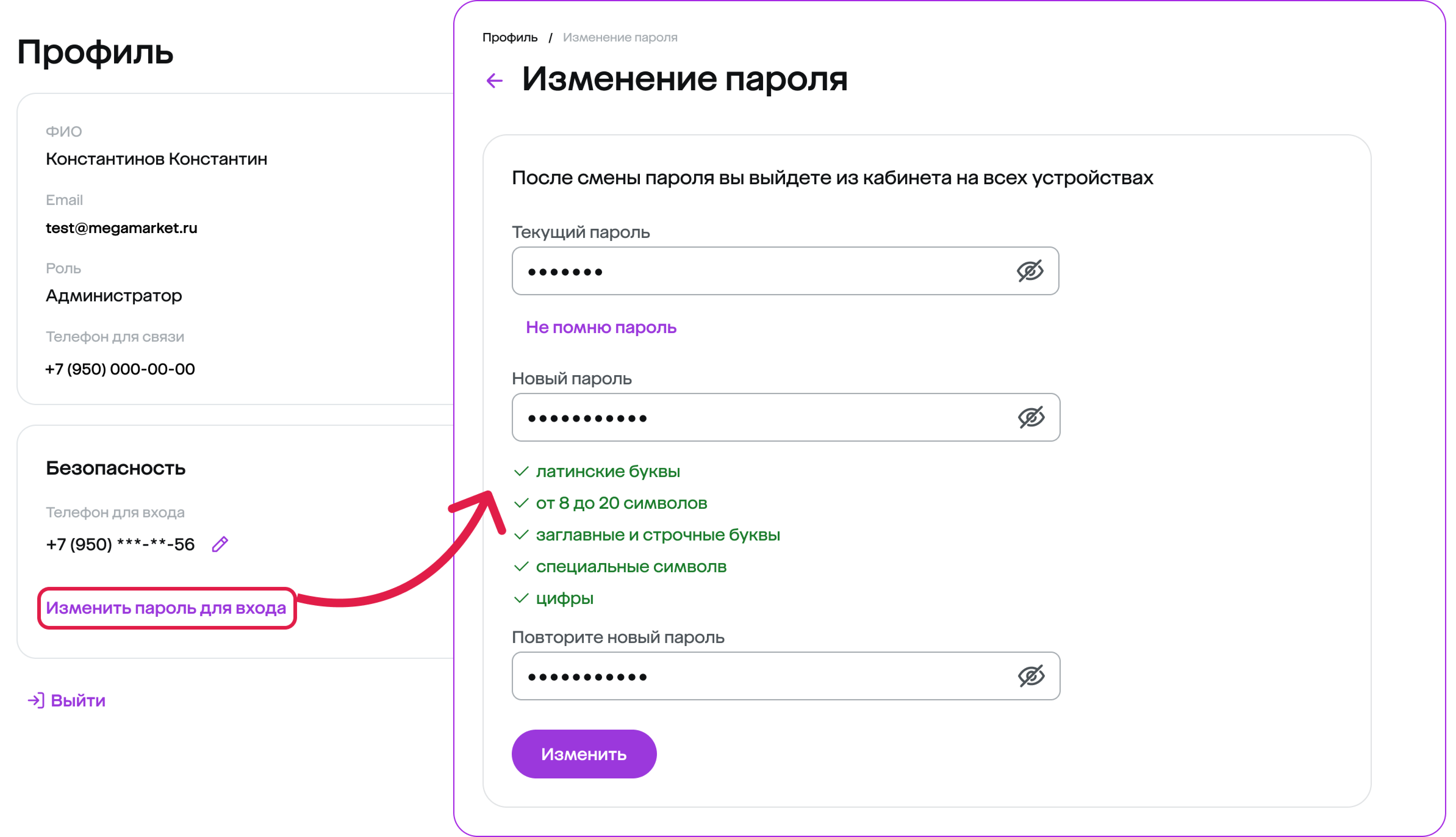 4. После ввода нажмите Изменить. Готово, теперь для входа можно использовать новый пароль.