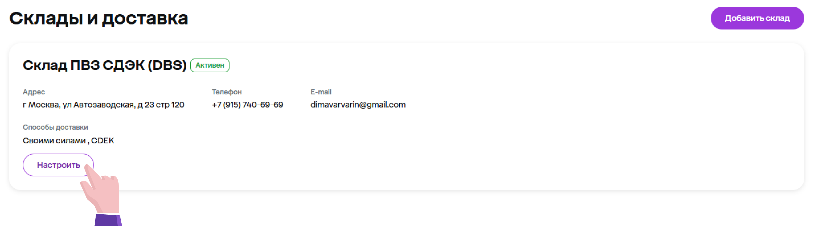 Настройка склада и доставки для схемы «Доставка от продавца (DBS)»