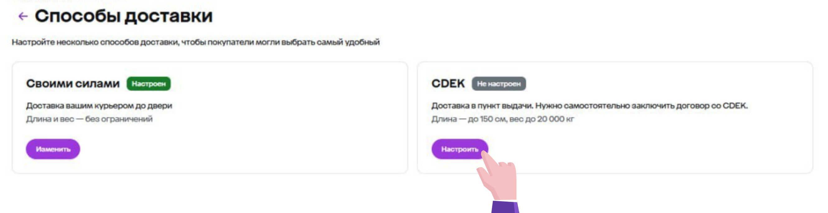Для дальнейшей настройки доставки следуйте инструкции ниже.