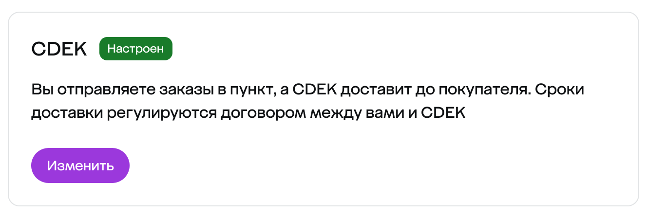 Сейчас для настройки доставки rDBS доступна транспортная компания CDEK.