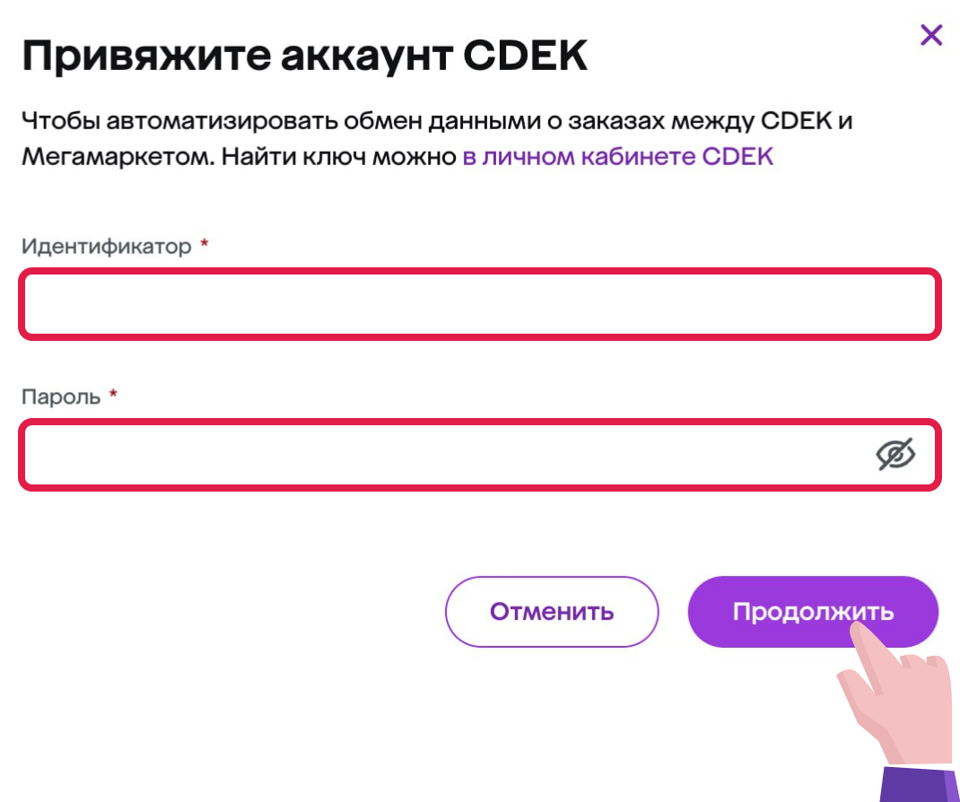 Привяжите аккаунт CDEKа, если договор уже заключен. Для этого: