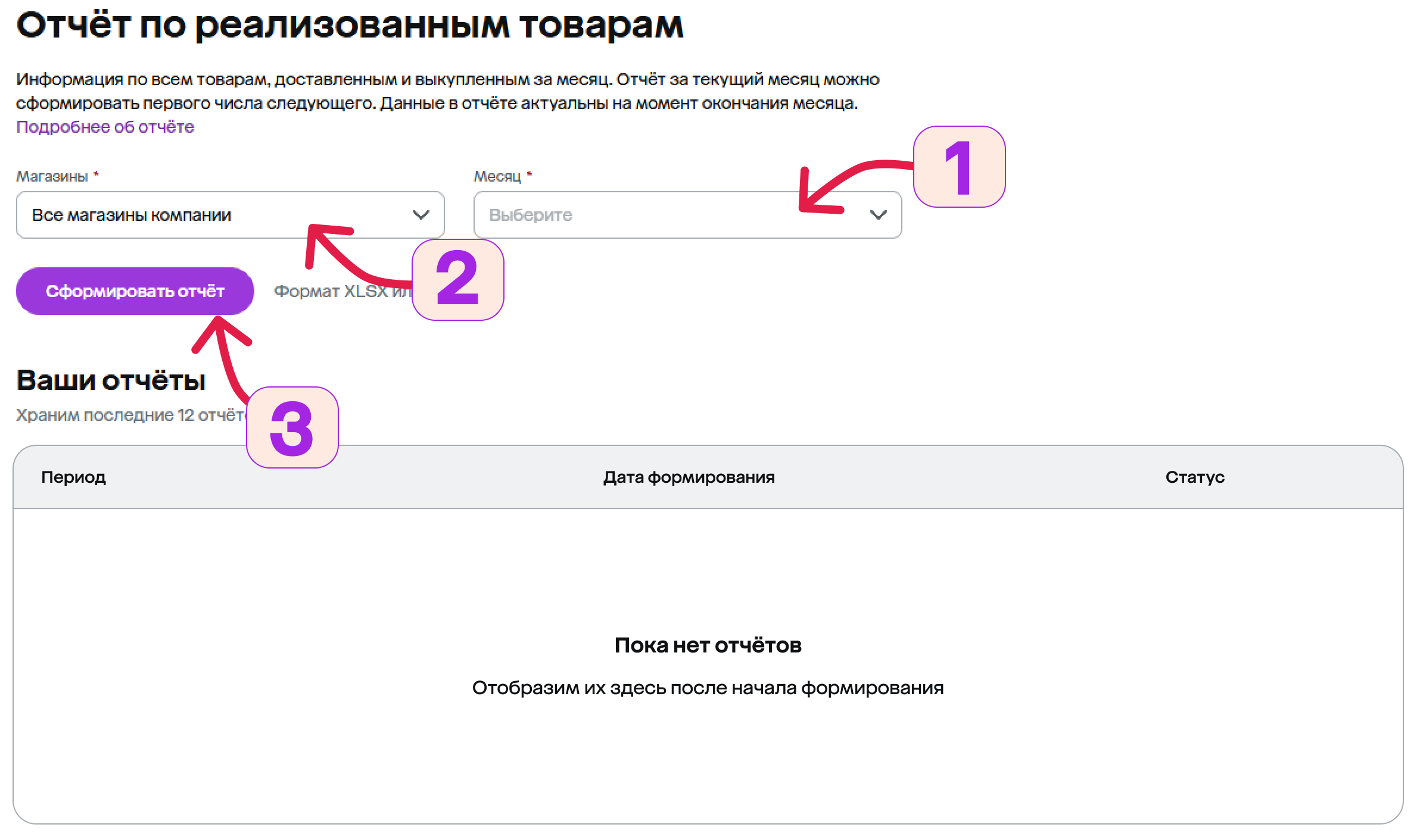 3. Сформируйте отчёт. Он скачается на ваше устройство в xlsx или csv-формате.