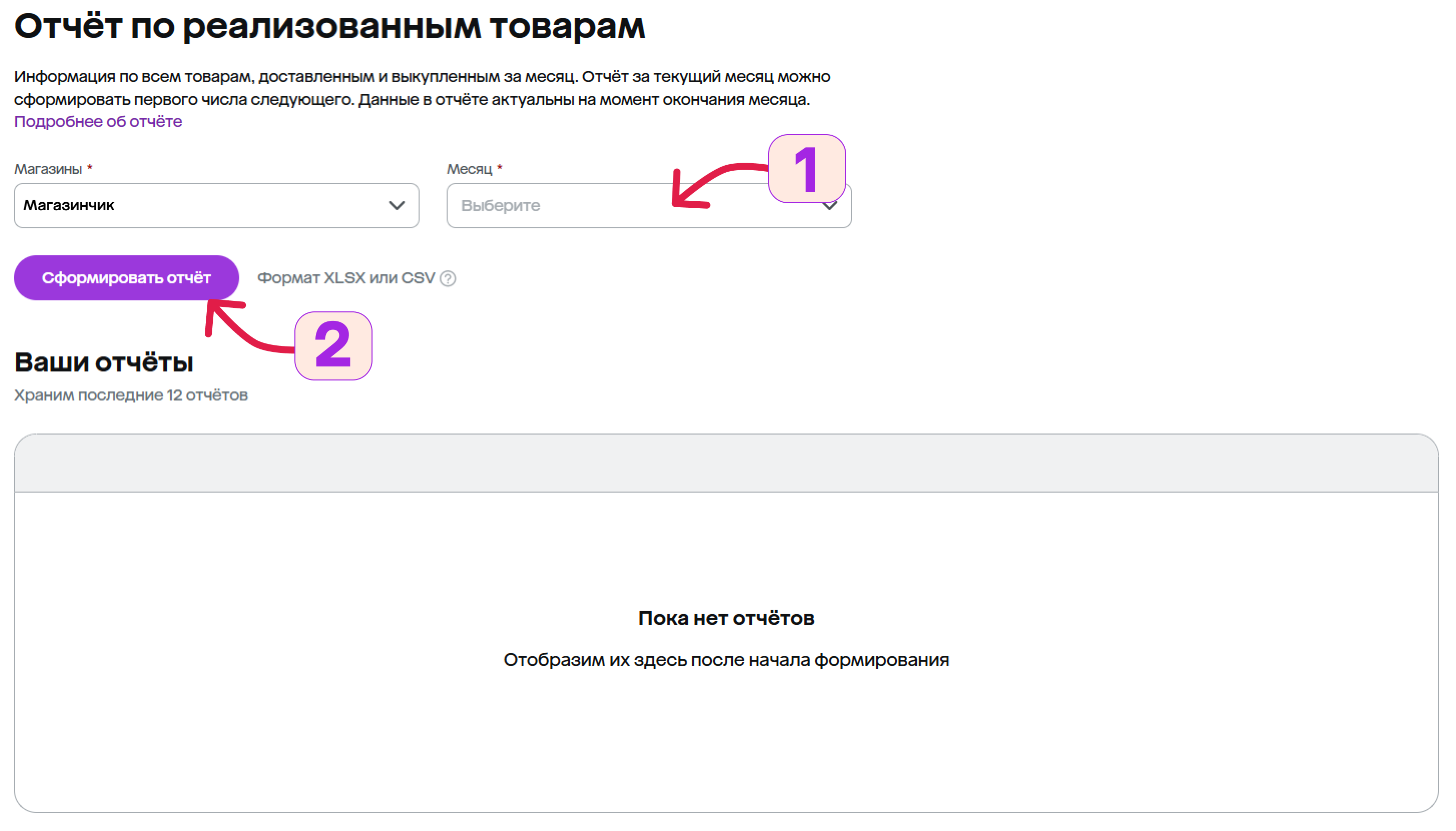 2. Сформируйте отчёт. Он скачается на ваше устройство в xlsx или csv-формате.