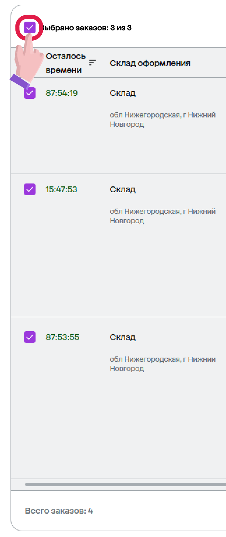 Одновременно можно обрабатывать как некоторые заказы, так и все сразу.