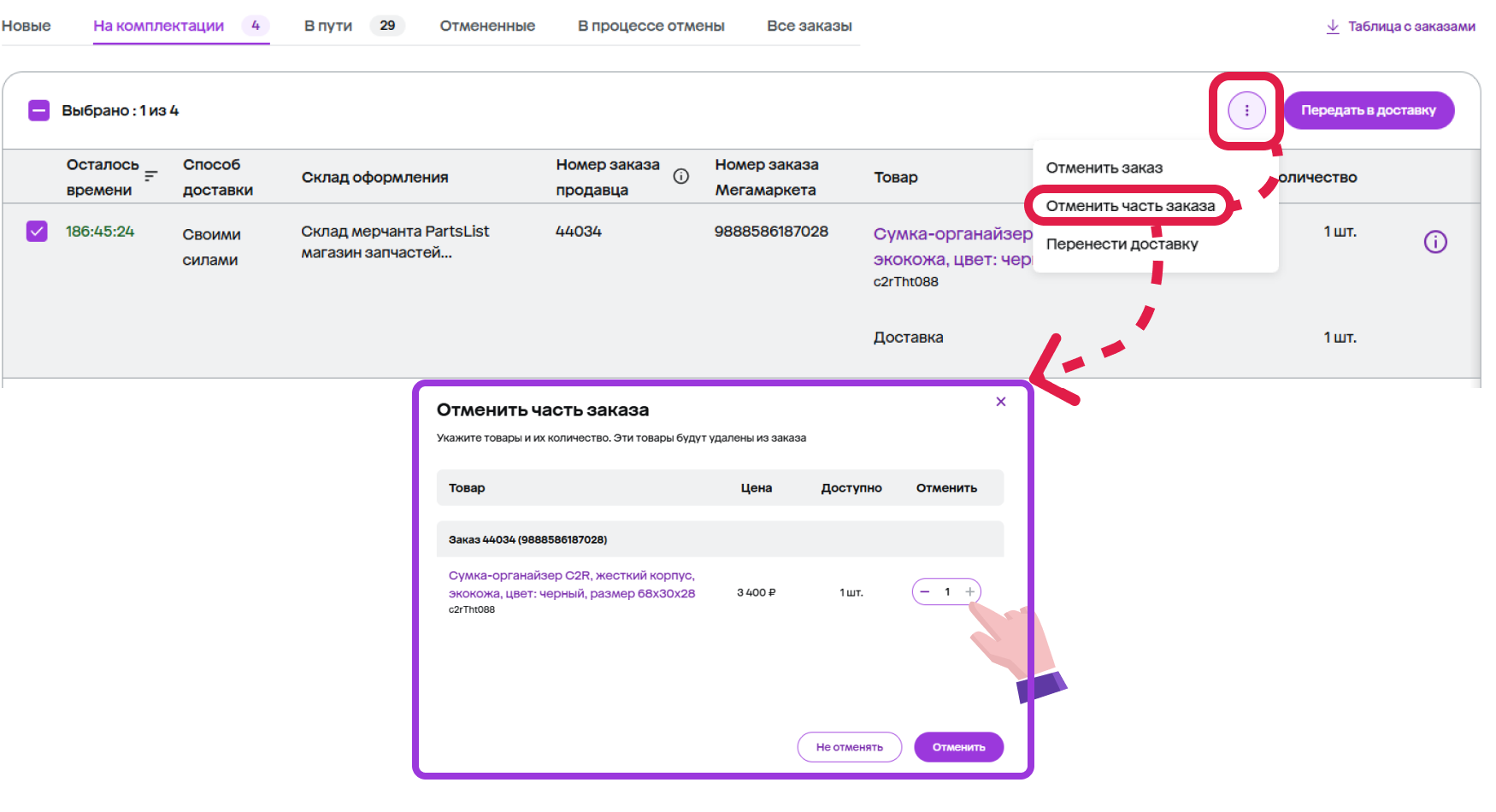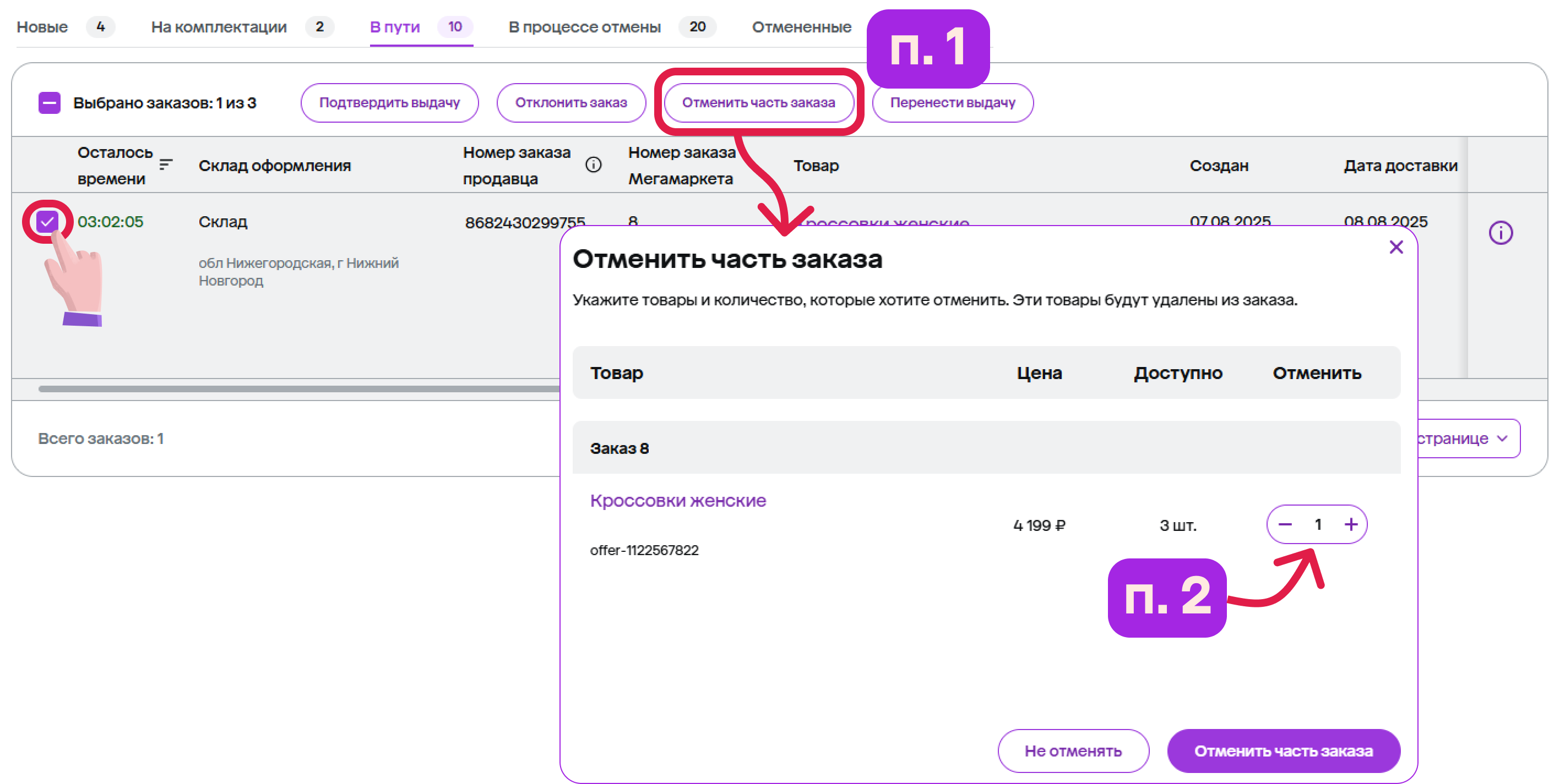 Шаг 1. Ещё раз проверьте, все ли товары из заказа в наличии