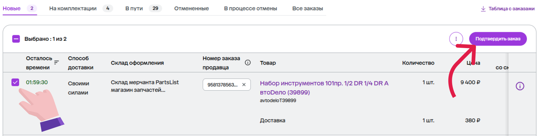 Шаг 2. Поставьте галочку около заказа