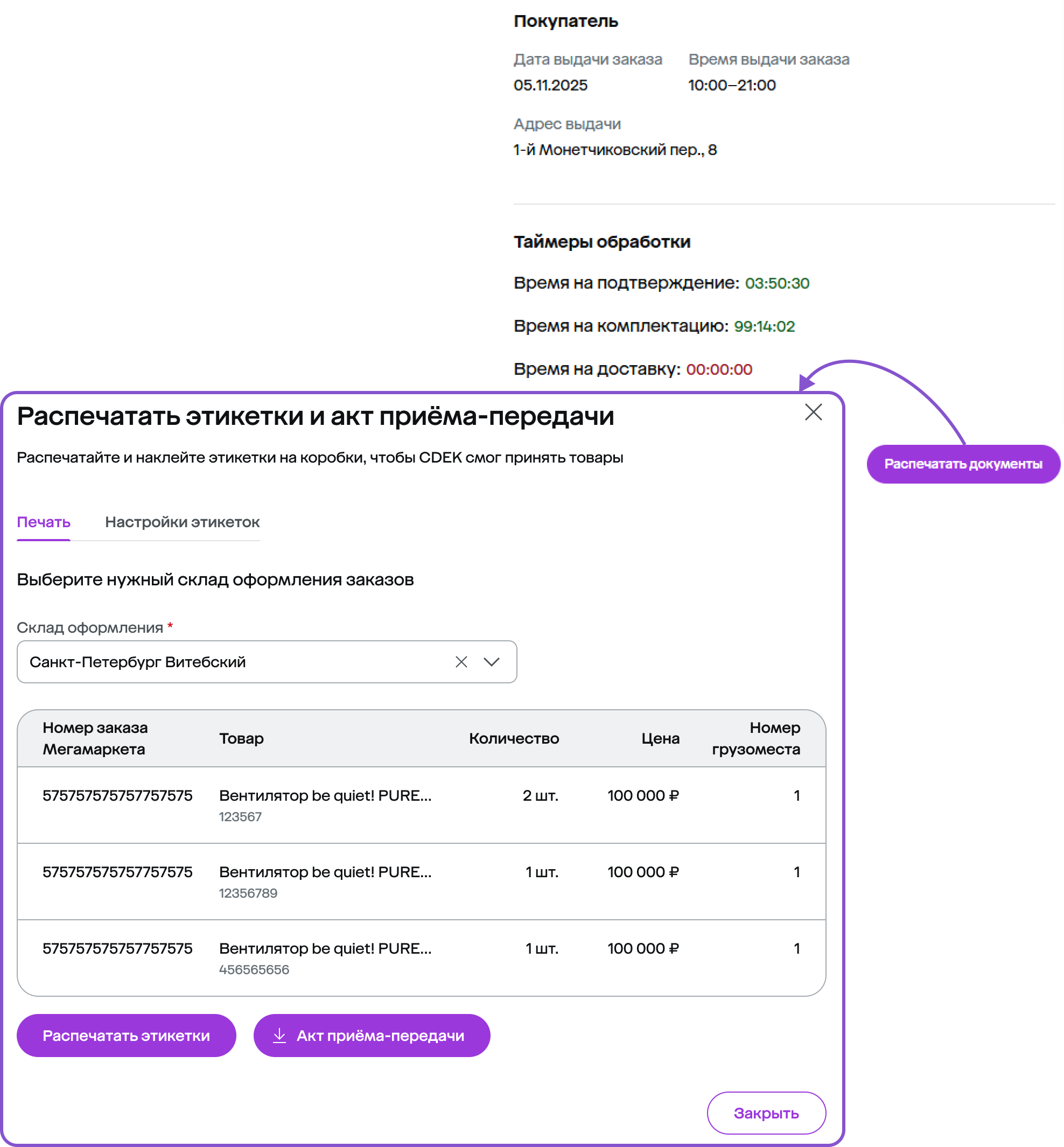 Склад оформления — на каком складе надо подтвердить наличие товаров и скомплектовать их.