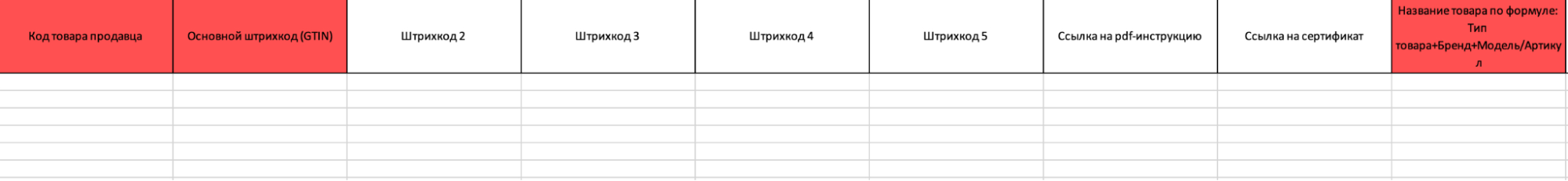 Уникальный код товара, который вы используете в вашей системе и передаёте в файле с ассортиментом. Код товара продавца должен быть уникальным для каждого товара в рамках одного магазина. Он нужен для связки карточек товаров с карточками Мегамаркета. В коде не должно быть символы # и %. После того как вы создадите карточки, вам нужно будет связать ваши товары из файла с ассортиментом с созданными карточками Мегамаркета. Если код товара продавца указан верно, связка произойдёт автоматически.