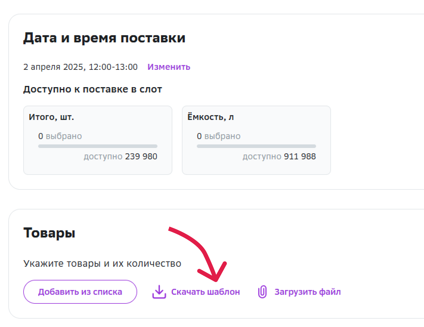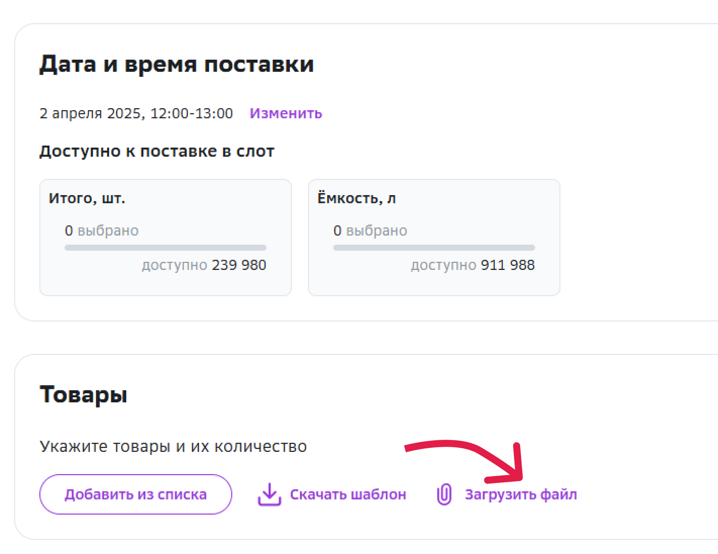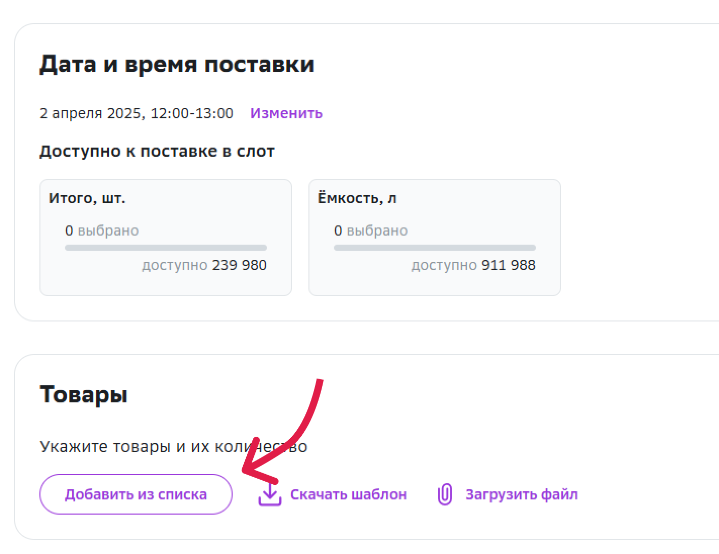 6. Укажите товары, которые привезёте на склад. Это можно сделать двумя способами: