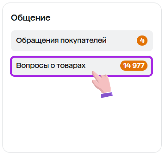 Удобно следить, сколько есть неотвеченных вопросов или обращений от покупателей.